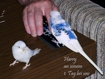 Schließlich holten wir Harry.---- Rudolf hörte ihn, sprang auf dessen „Reisekäfig“ und hinein, nachdem ich ihn geöffnet hatte.